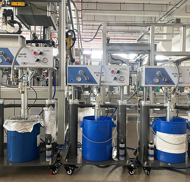一款用于儲(chǔ)能產(chǎn)品ab膠自動(dòng)配比,自混合,自動(dòng)灌膠的設(shè)備,常用膠水為硅膠,